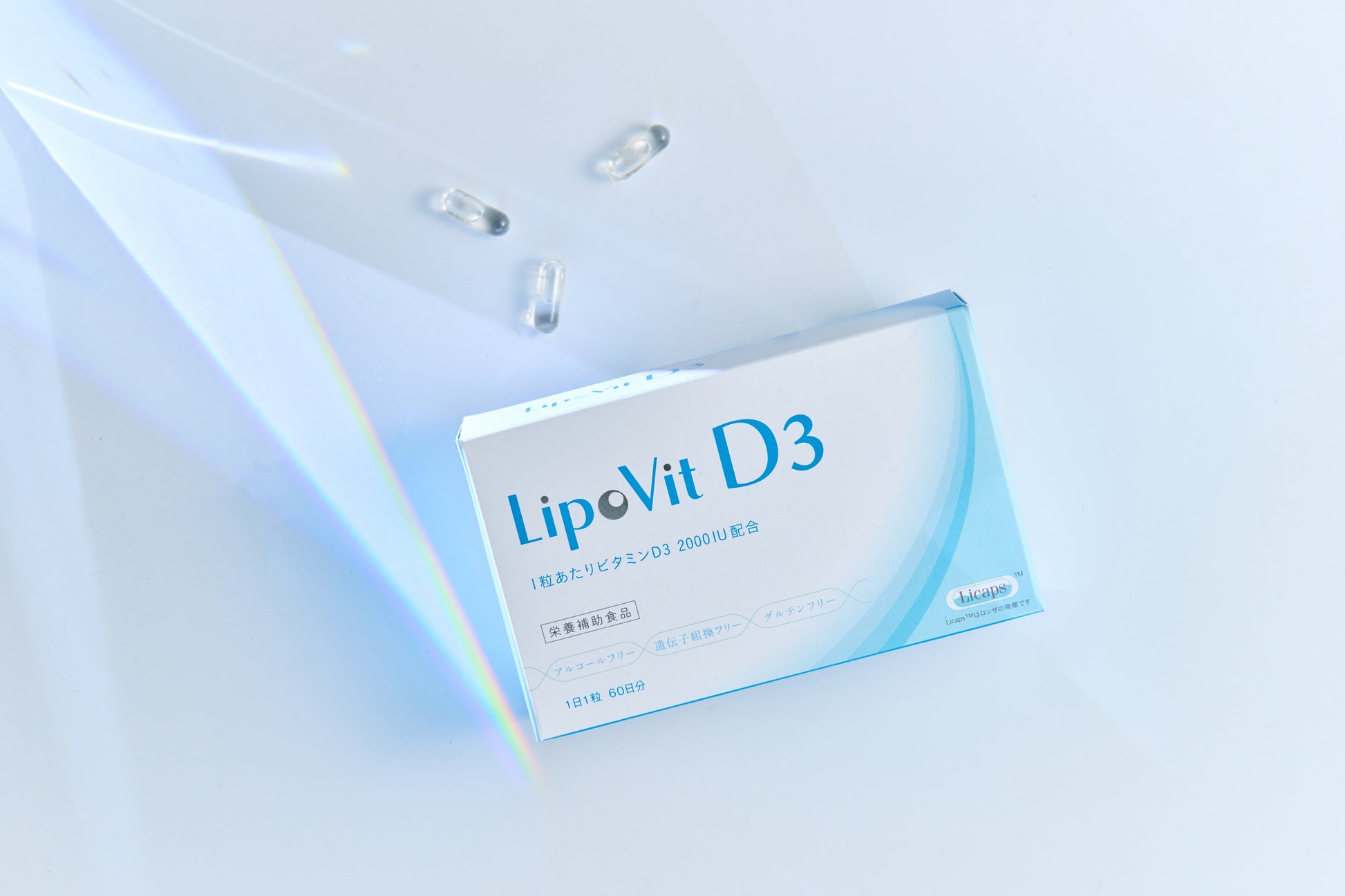 ビタミンD3は水に溶けない脂溶性、そのままでは体内に吸収しにくい成分です。リポビットD3はリポソーム化することで水に溶けやすくし、吸収にもこだわっています。